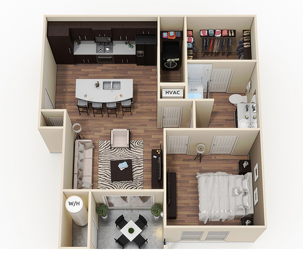 A2 – 1 Bed, 1 Bath – 596 Sq. Ft.